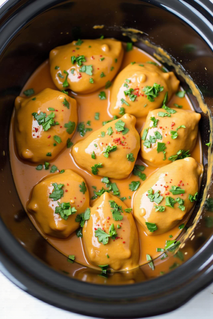 The secret to a luscious sauce is blending peanut butter with coconut milk, soy sauce, ginger, garlic, and a dash of lime. These ingredients melt together in the slow cooker, infusing the chicken with that classic Thai-inspired peanut flavor. For extra spice, add a little sriracha or red pepper flakes to taste.